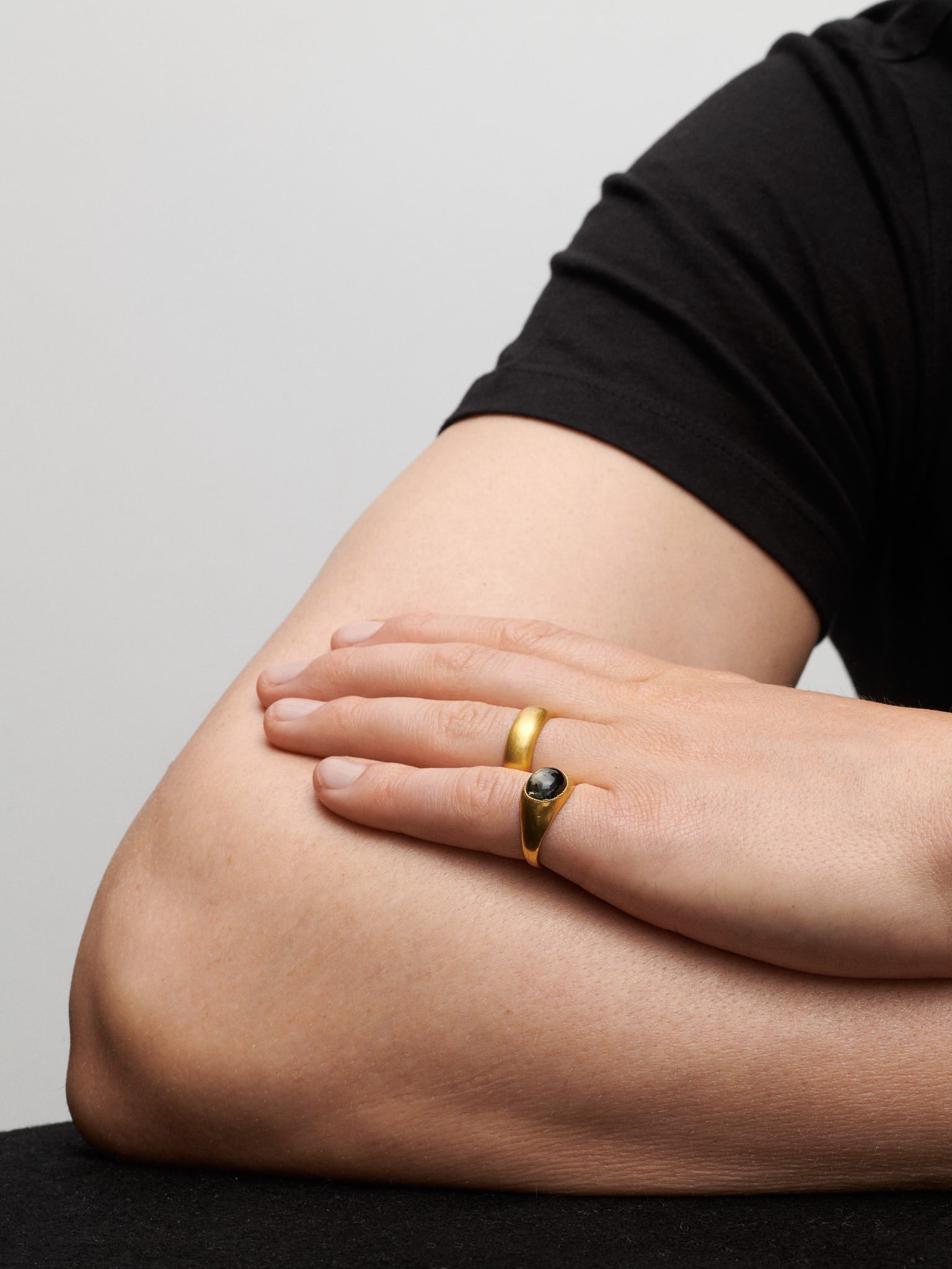 The 6mm gold band in a classic half-round shape is made with our signature 22-karat gold. A band for ceremony, for partnerships, for self-care. Engravable.