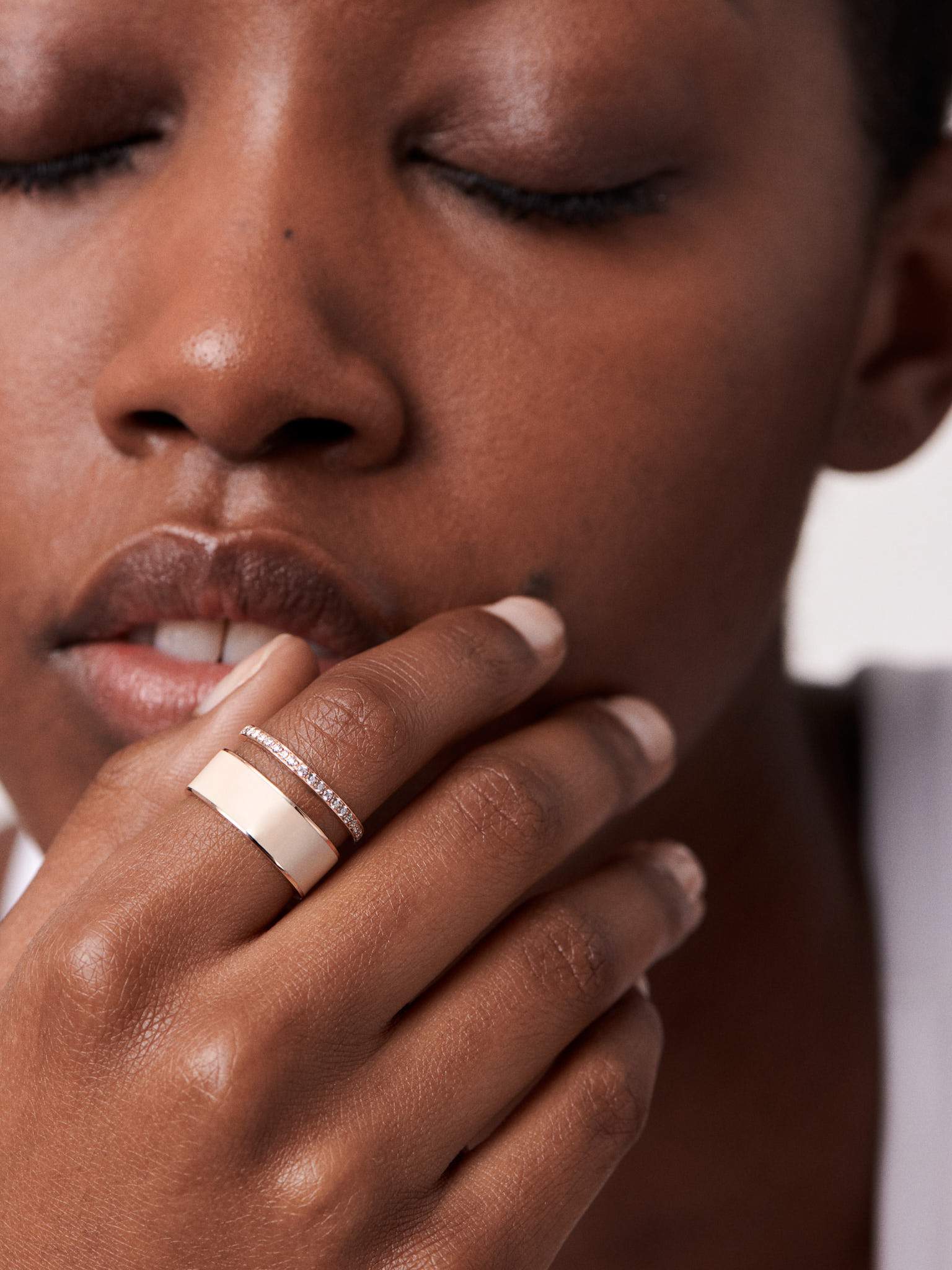 Berbere Chromatic Ring Nude lacquer 2 rows Thin row paved with diamonds
