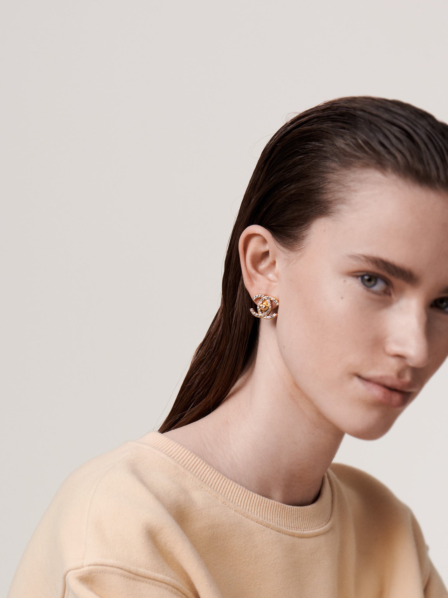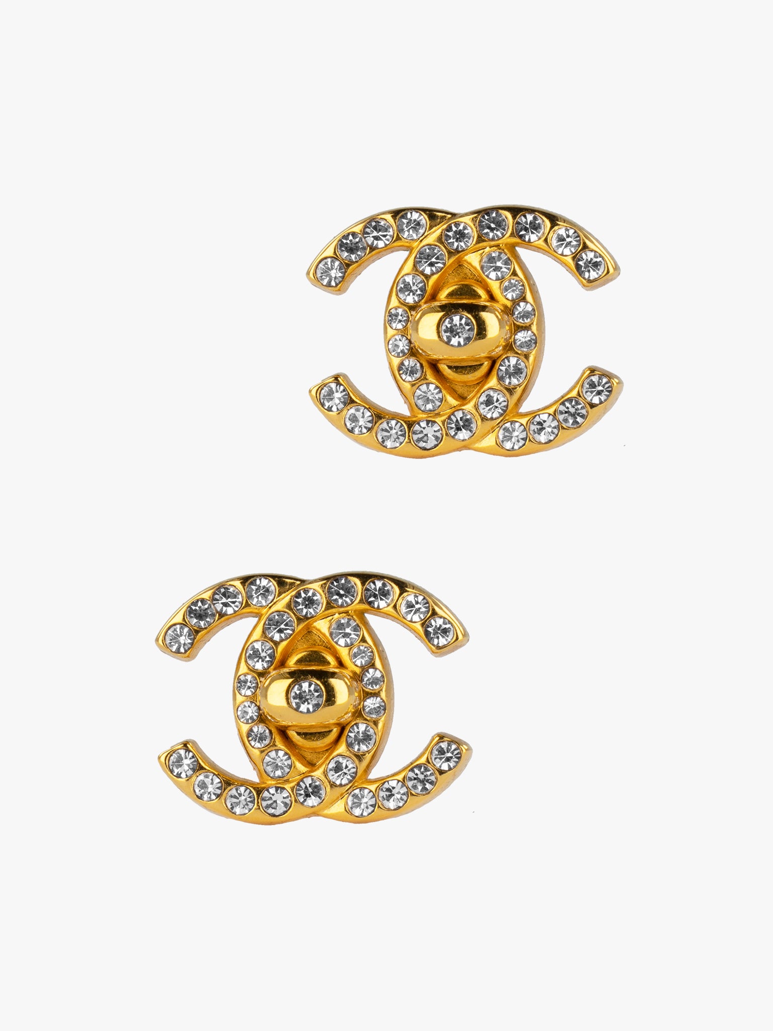 A pair of iconic Chanel Turnlock CC earrings. Taken a notch higher with their gorgeous crystal embellishment. These are simply the perfect Chanel earring and hail from the 1996 Autumn Winter Chanel Collection