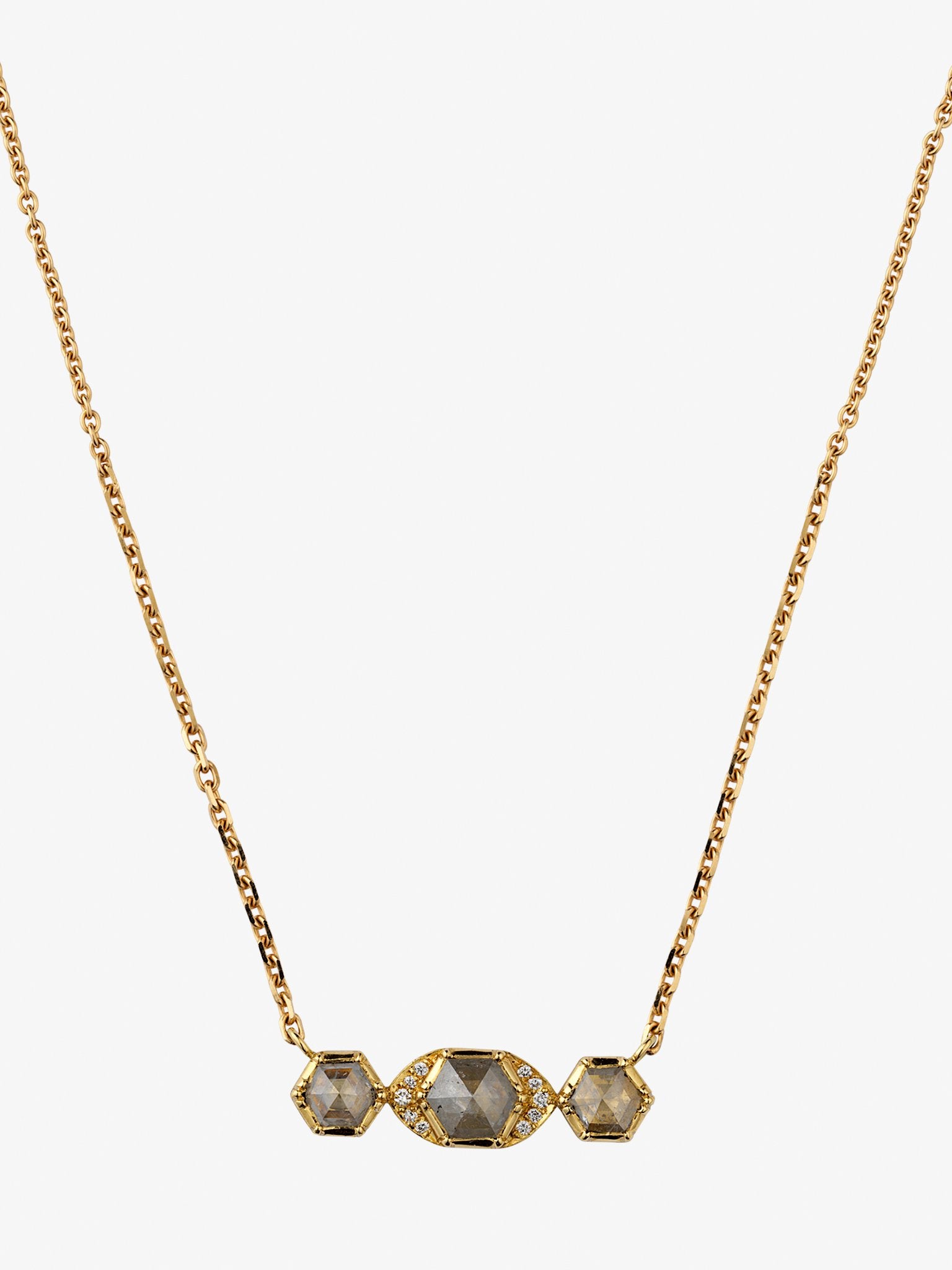 18k gold georgian bezel diamond slice necklace with 18k gold chain.
